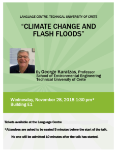 Την Τετάρτη 28 Νοεμβρίου ο καθ κ Γ. Καρατζάς κατά την ομιλία του με θέμα “Climate change – Flash Floods” στο Γλωσσικό Κέντρο του Πολυτεχνείου μεταξύ άλλων παρουσίασε και το ERMIS-F. Η παρουσίαση κινητοποίησε τους φοιτητές του Πολυτεχνείου Κρήτης, αφού συμμετείχαν ενεργά με σημαντική παρουσία και ερωτήσεις.